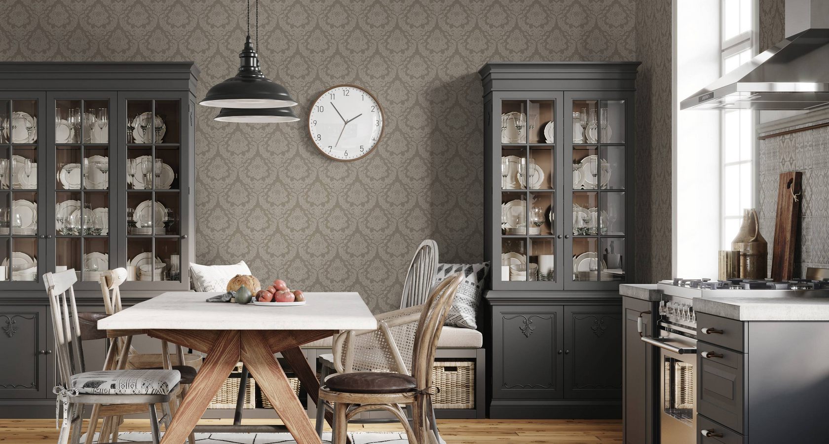 Благородный классический дамаск, как никакой другой узор, способен создать атмосферу роскошных дворцовых залов. Изящные, плавные линии и изгибы подчеркнут ваш безупречный вкус, становясь ключевым элементом интерьера.